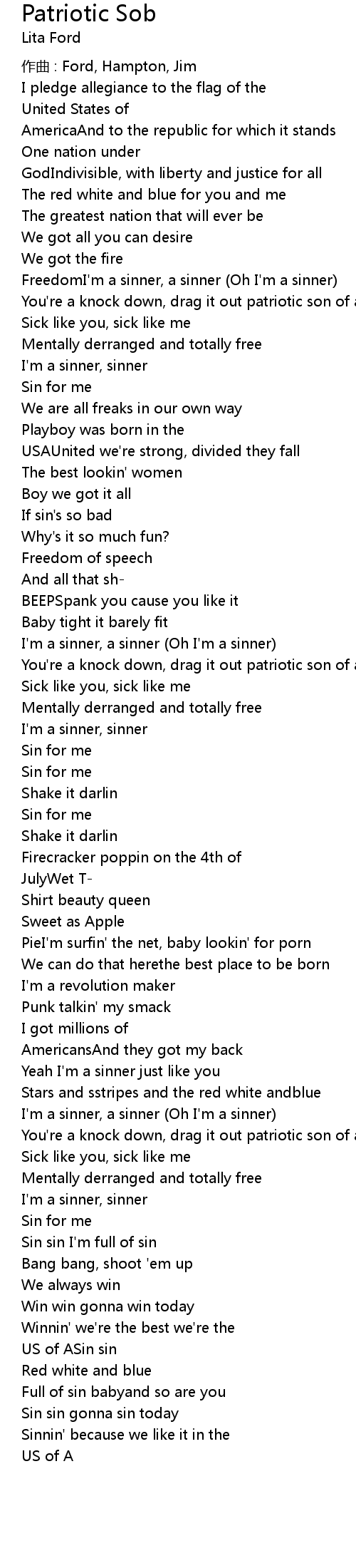 | You' re a knock down, drag it out patriotic son of a bitch 1 Patriotic SOB | |
