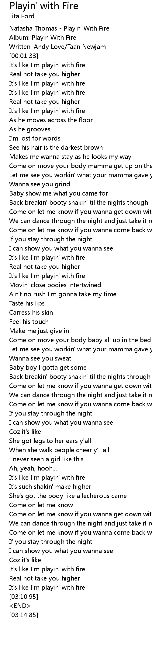 | [03:01.97] | It's like I'm playin' with fire |