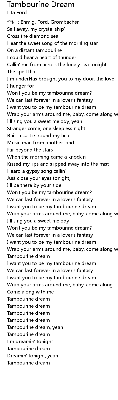 | I want you to be my tambourine dream | |