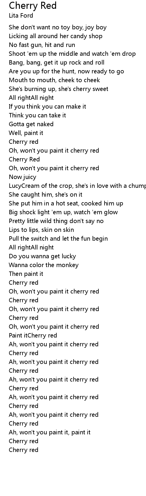 | Oh, won't you paint it cherry red | |