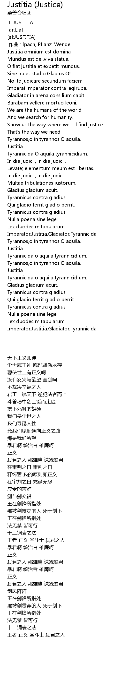 | [00:56.66] | O fiat justitia et expetit mundus. |