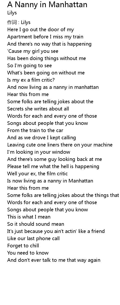 | Song | A Nanny in Manhattan |