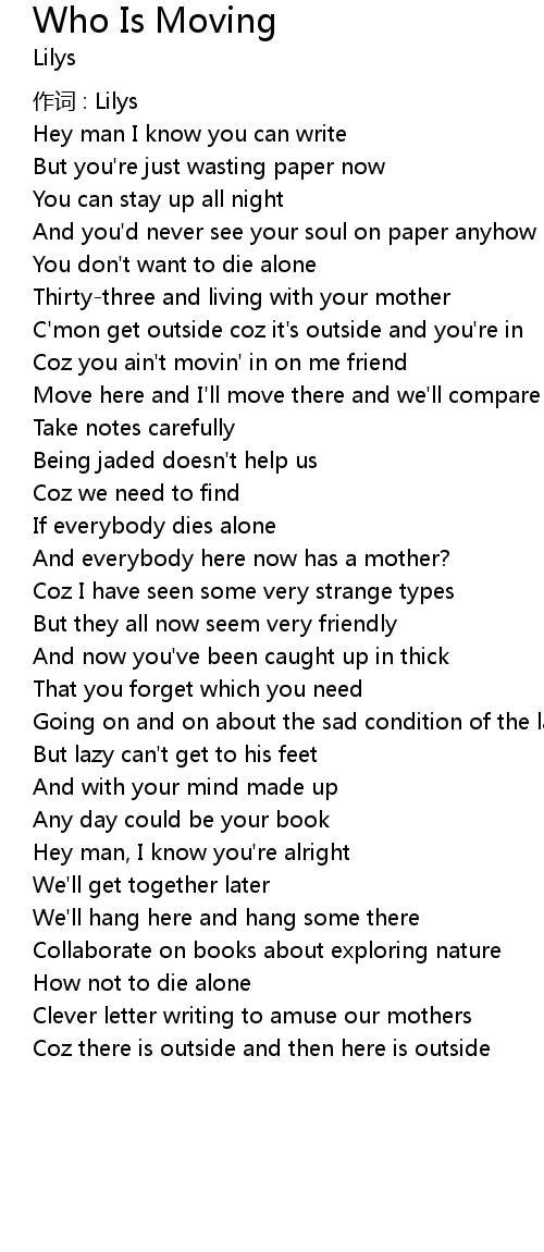| Song | Who Is Moving |