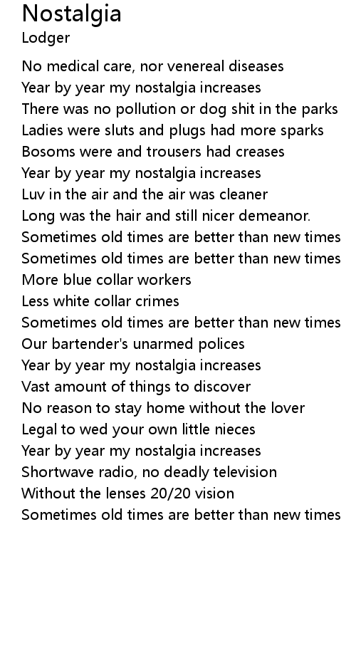 Year by year my nostalgia increases |
