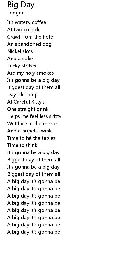 | A big day it's gonna be | |
