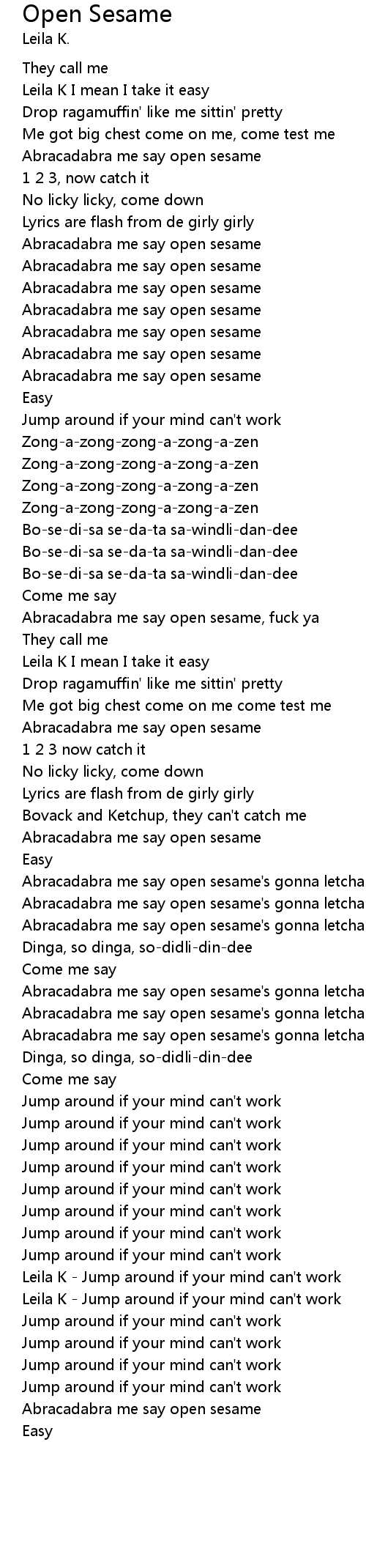 | Abracadabra me say open sesame, fuck ya | |