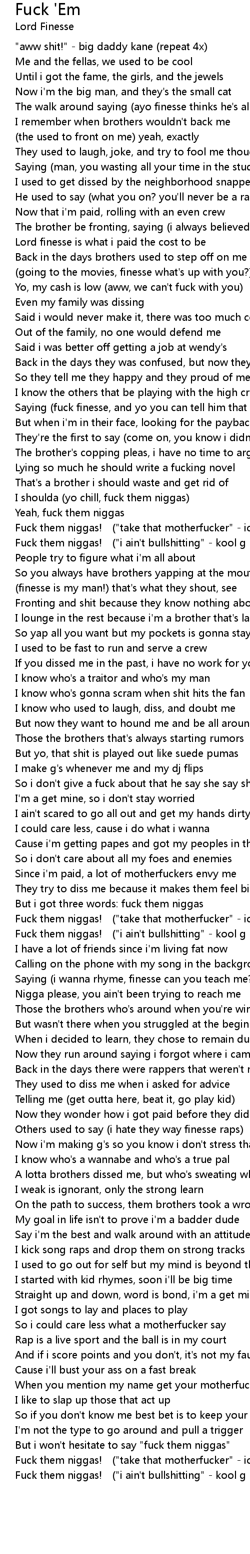 | Fuck them niggas! ("i ain't bullshitting" - kool g rap) (repeat 2x) |
