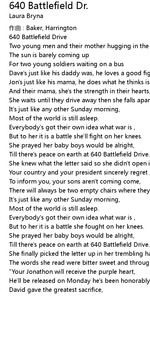 | Song | 640 Battlefield Dr. |