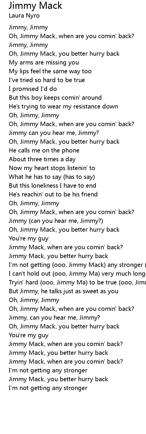 I'm not getting (ooo, Jimmy Mack) any stronger (ooo, Jimmy Ma) |