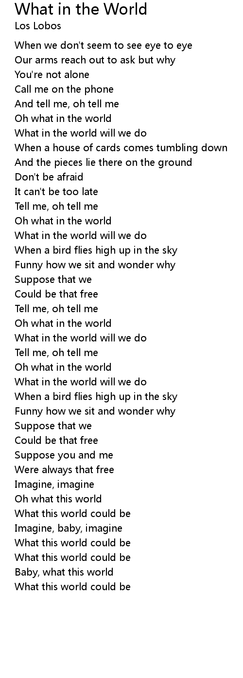 Oh what in the world |