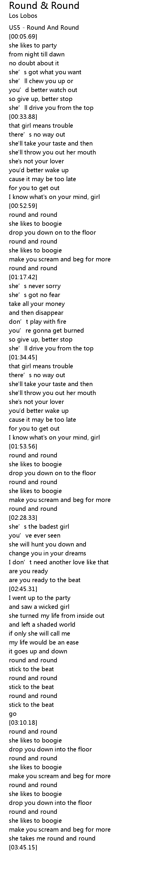 | [03:01.99] | round and round |