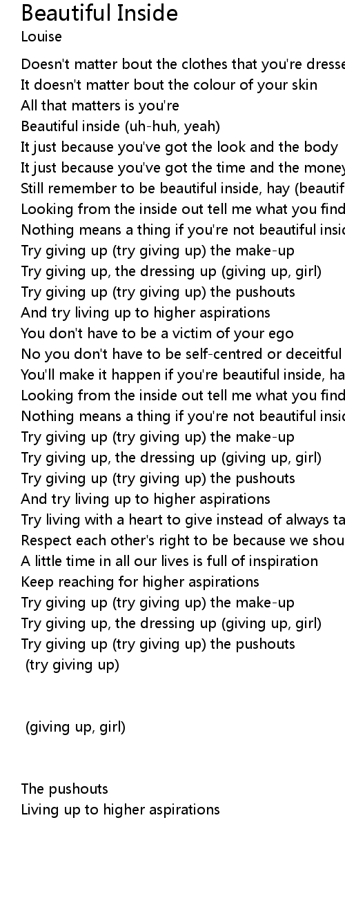 Nothing means a thing if you're not beautiful inside |