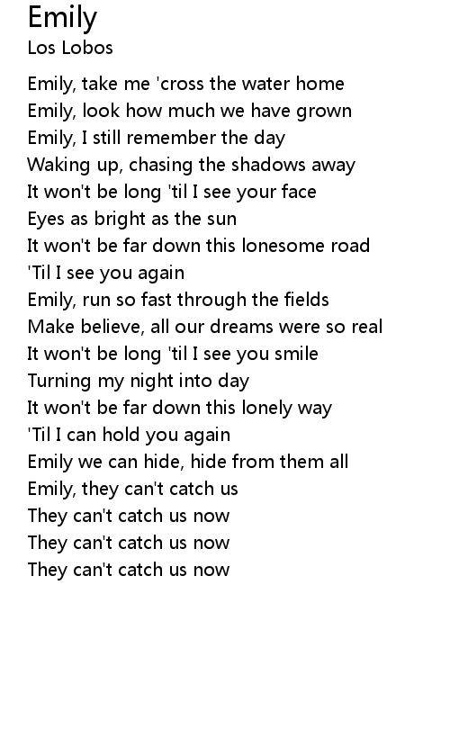 Emily, take me 'cross the water home |