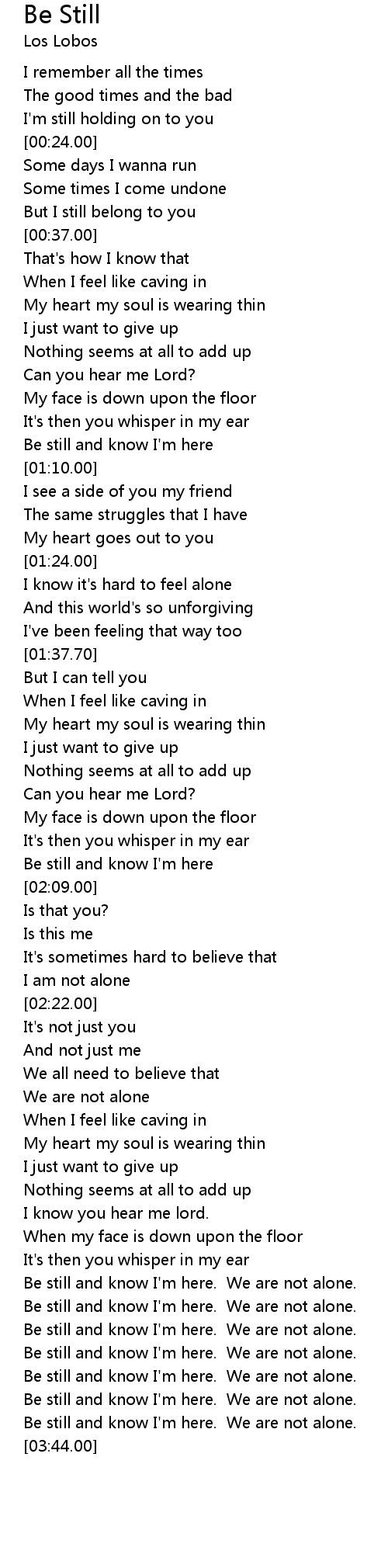Be still and know I'm here. We are not alone. |