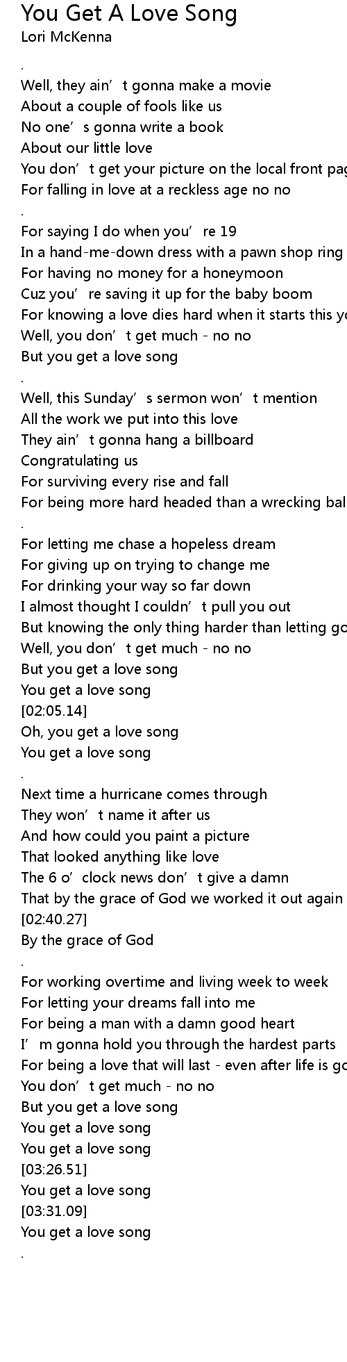 | [03:09.51] | But you get a love song |