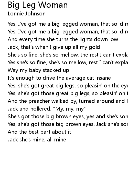 Yes, I've got me a big legged woman, that solid rocks my soul