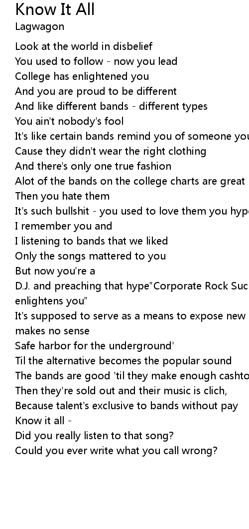 | The bands are good 'til they make enough cashto eat food and get a pad | |