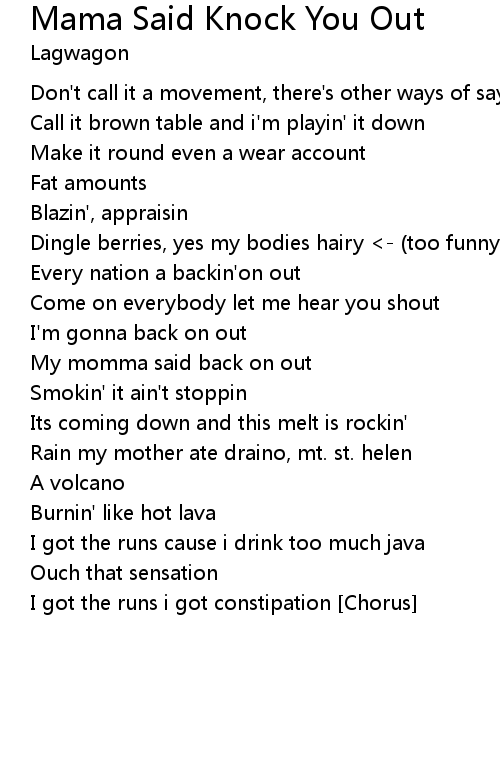 | My momma said back on out | |