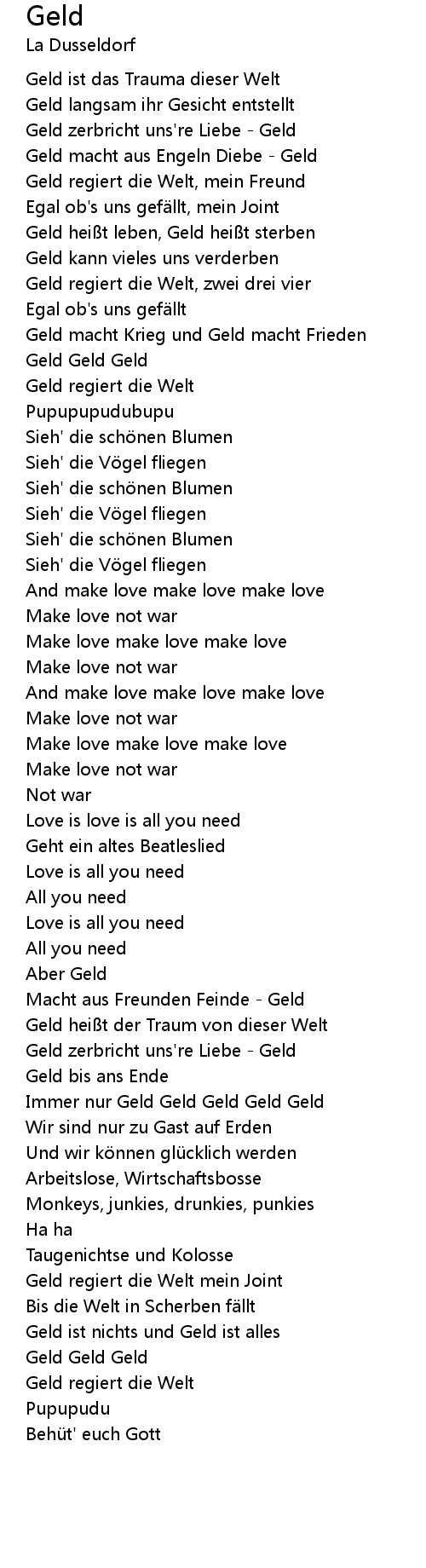| Geld zerbricht uns're Liebe - Geld | |