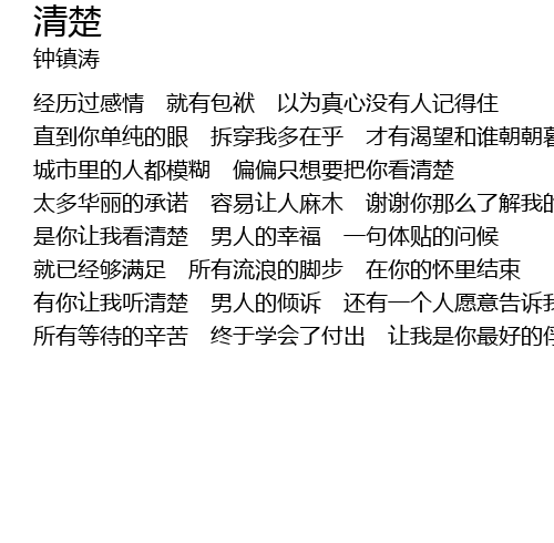 | 太多华丽的承诺 容易让人麻木 谢谢你那么了解我的苦 | |