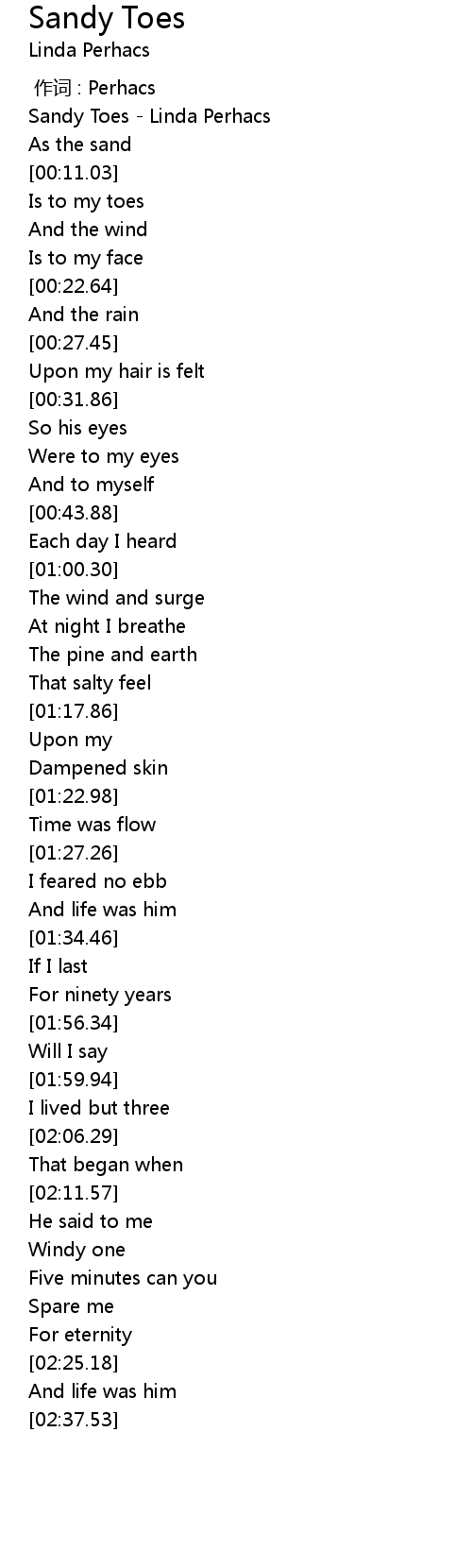 | [00:02.10] | Sandy Toes Linda Perhacs |