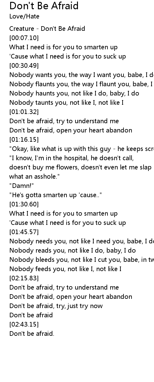 Don't be afraid, try to understand me |