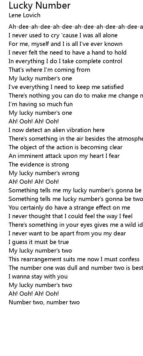 Something tells me lucky number's gonna be two-ee-oo-ee-oo-ee-oo-ee-oo |