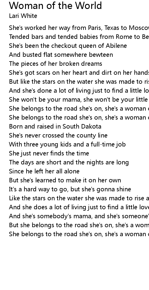She's worked her way from Paris, Texas to Moscow, Alabam' |