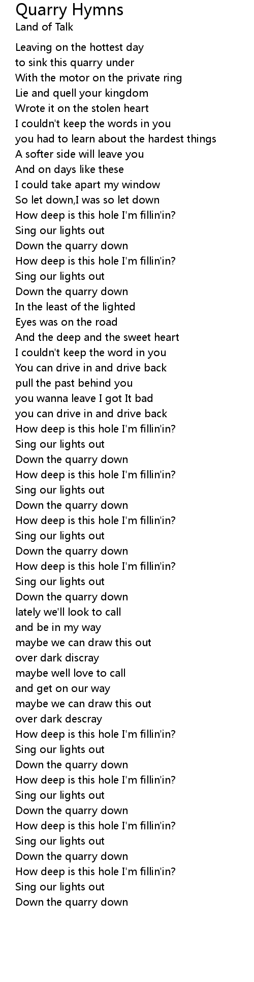 Down the quarry down |