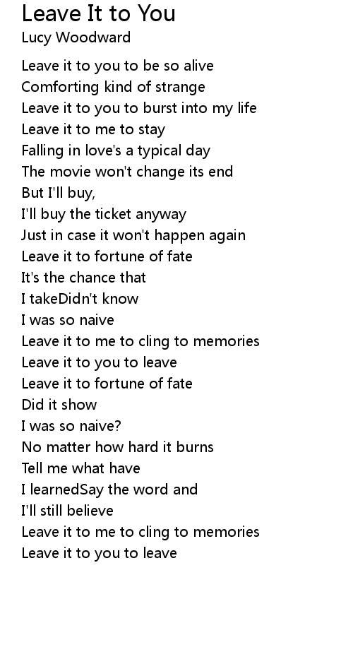 Leave it to me to stay |