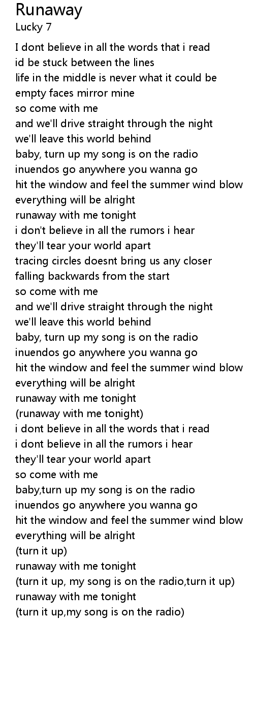 | baby, turn up my song is on the radio | |