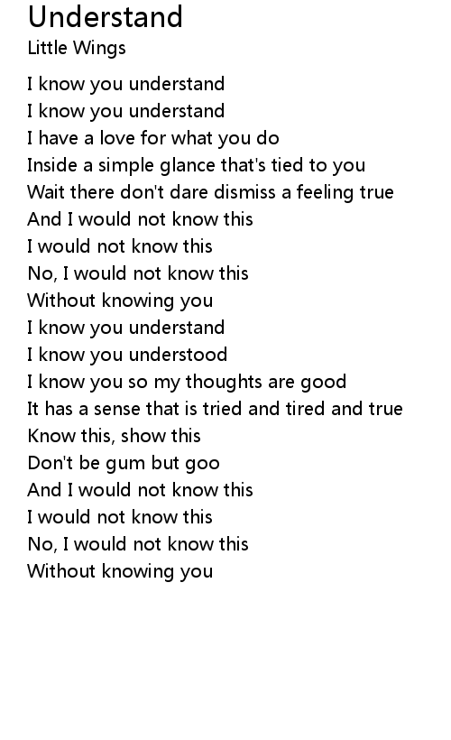 I know you understand |