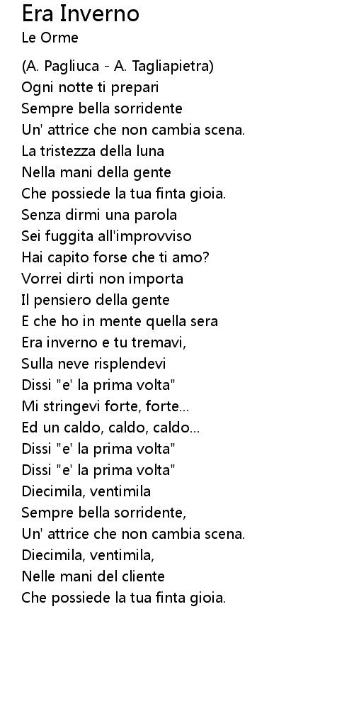 Era inverno e tu tremavi, |