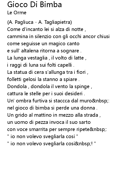 | Song | Gioco Di Bimba |