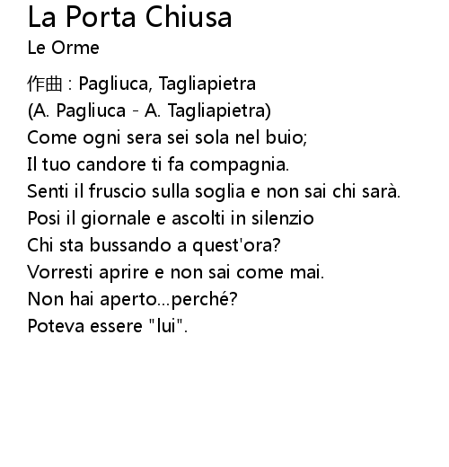 | Senti il fruscio sulla soglia e non sai chi sara. | |