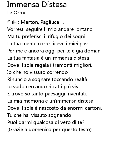 | Song | Immensa Distesa |