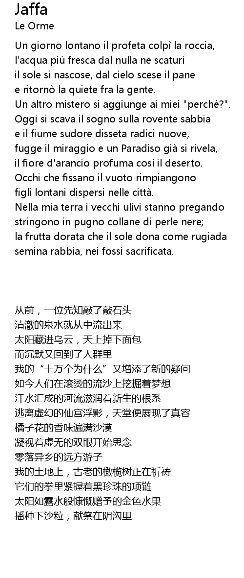 | [02:35.52] | Nella mia terra i vecchi ulivi stanno pregando |