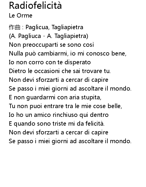 | Song | Radiofelicità |