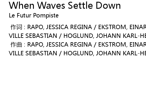 | [00:00.000] | zuo qu : RAPO, JESSICA REGINA EKSTROM, EINAR JOHANNES HOPPONEN, VILLE SEBASTIAN HOGLUND, JOHANN KARLHENDRIK EKSTROM, AXEL VILHELM |