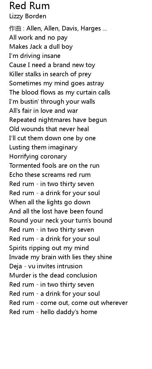 | Red rum come out, come out wherever | |