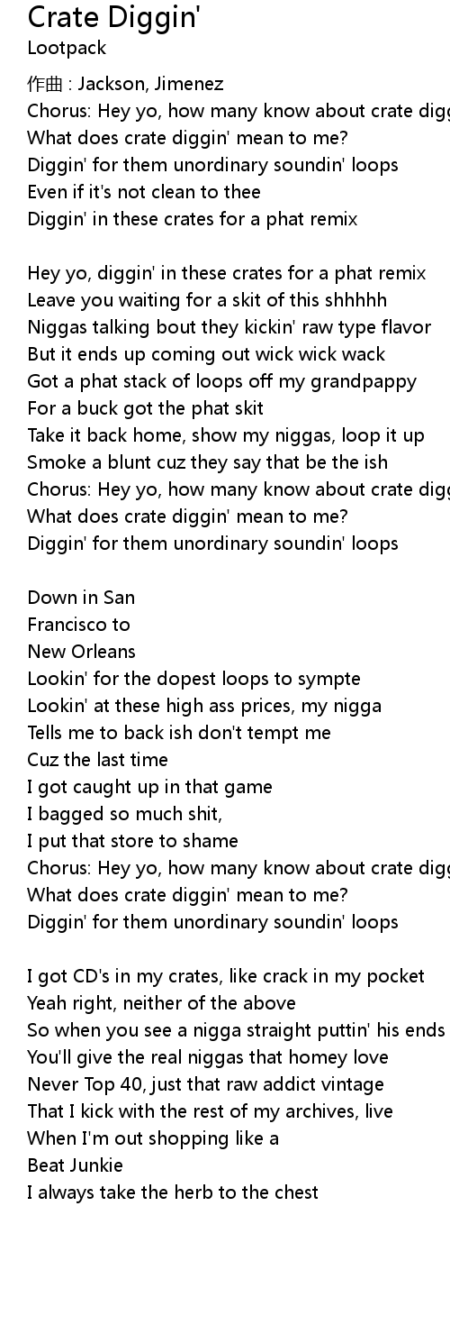 | Chorus: Hey yo, how many know about crate diggin'? | |