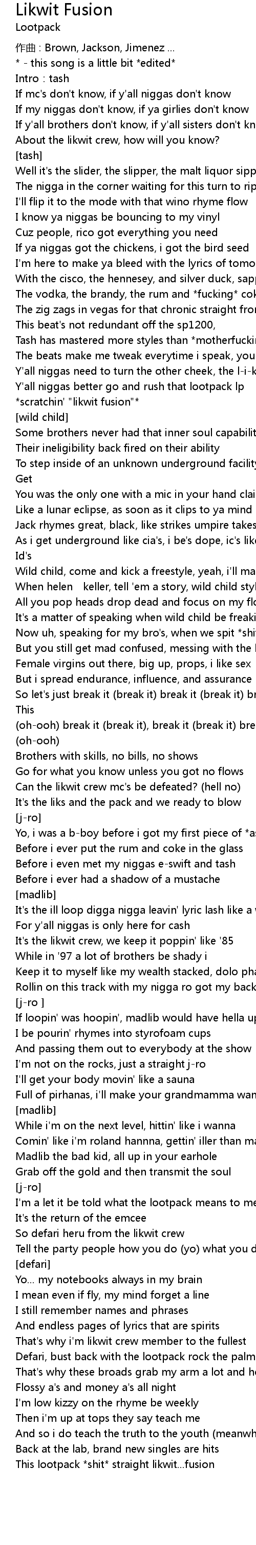 | This lootpack shit straight likwit... fusion |