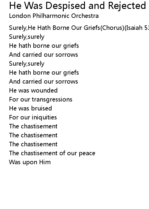 | [00:00.00] | Surely,He Hath Borne Our Griefs(Chorus)(Isaiah 53:4-5) |
