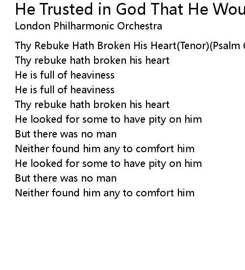 | [00:00.00] | Thy Rebuke Hath Broken His Heart(Tenor)(Psalm 69:20) |