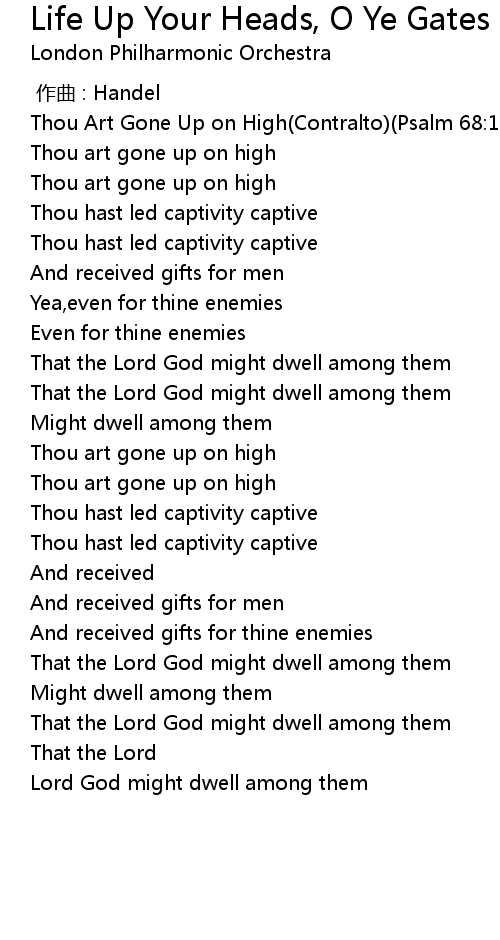 | [00:00.00] | Thou Art Gone Up on High Contralto Psalm 68: 18 |
