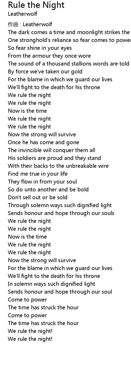 | Song | Rule the Night |