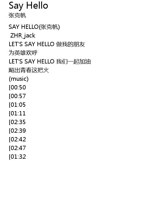 | [00:00] | SAY HELLO zhang ke fan |