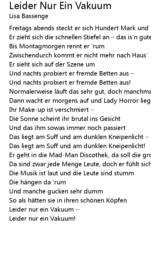 | Song | Leider Nur Ein Vakuum |