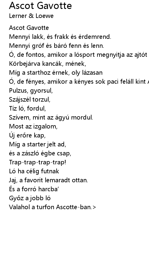 | Ó, de fé nyes, amikor a ké nyes sok paci felá ll kint Ascotban. | |