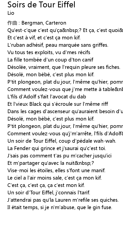 | Un soir d'Tour Eiffel, j'connais l'tarif. | |